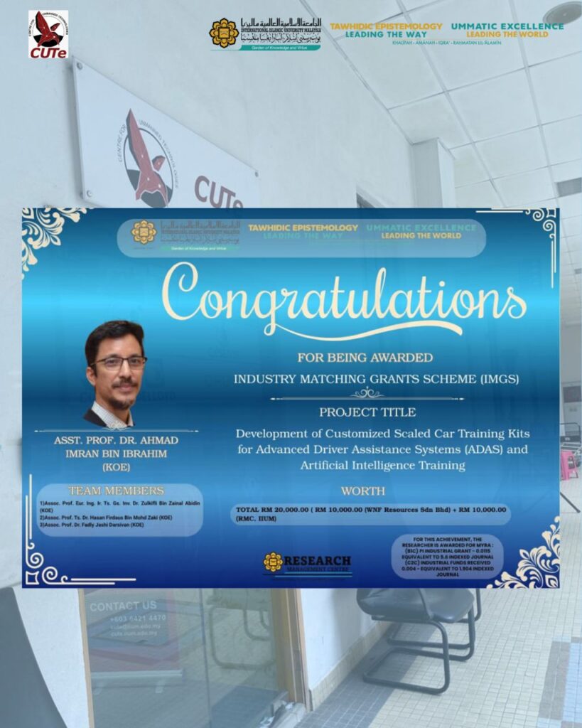 Centre for Unmanned Technology (CUTe) proudly congratulates Asst. Prof. Dr. Ahmad Imran bin Ibrahim and his team members: